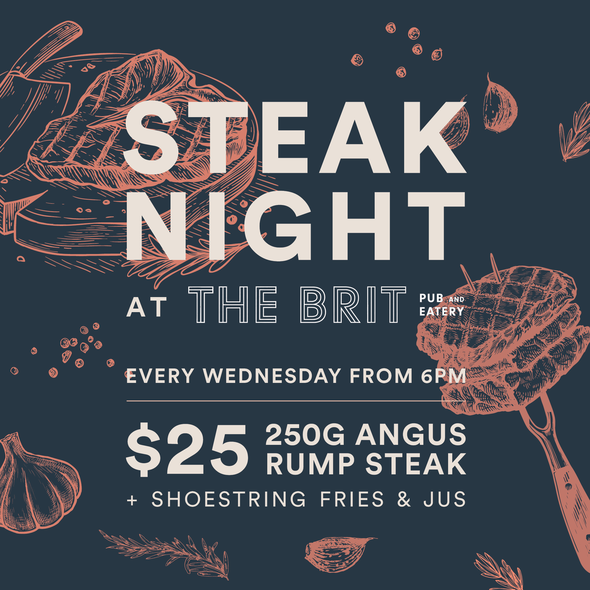 Every Wednesday from 6pm we'll be serving up a 250g Hurunui rump steak, shoestring fries, and gravy all for $25!