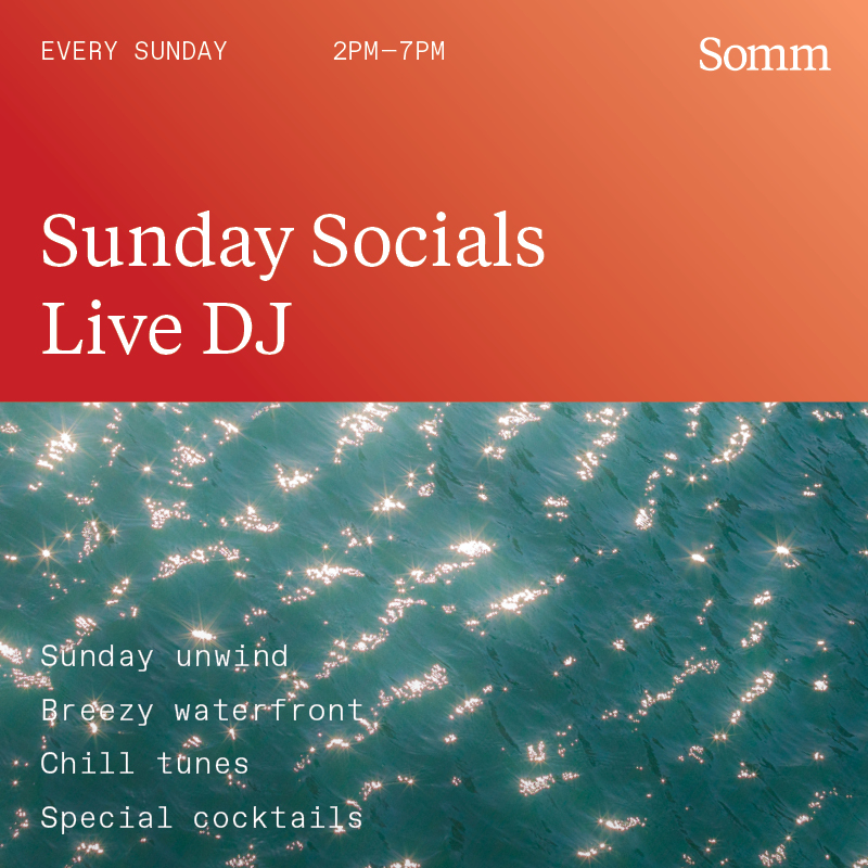 Introducing Sunday Socials, designed to slow down and sip something special with your favourite people. Settle in with waterfront views while DJ Spence serves up a laid-back soundtrack from 2pm-7pm.